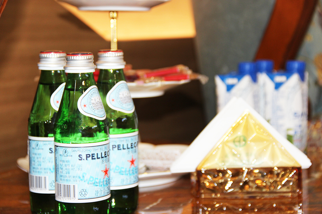 案幾上擺放了精致的點(diǎn)心和飲料一旁的酒柜上擺放了各種年份的高檔葡萄酒,還有現(xiàn)磨咖啡,供表主們休憩會(huì)談。